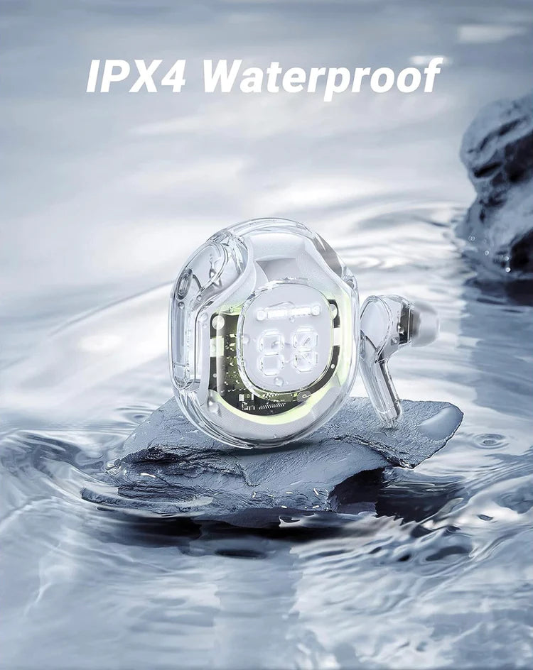 - [LED Digital Display & Colorful Design] Accurate LED display of the power of charging case and both earbuds, allowing you to know the power status of the wireless earbuds and charging case at any time. This series of Bluetooth earphones with translucent charging case, futuristic texture, 5 different colors. The waterproof earbuds can effectively prevent splash damage caused by sweat and raindrops.