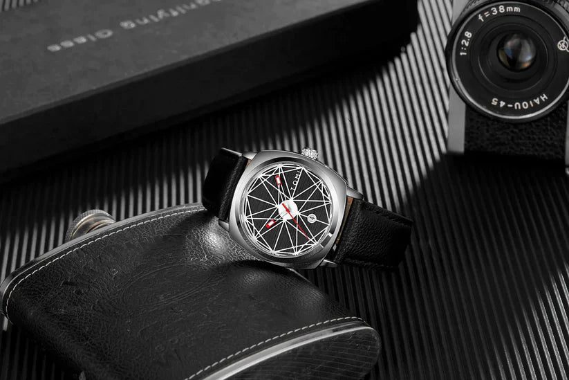 T-112 Men's Watch Date Quartz Square Dial Leather Straps