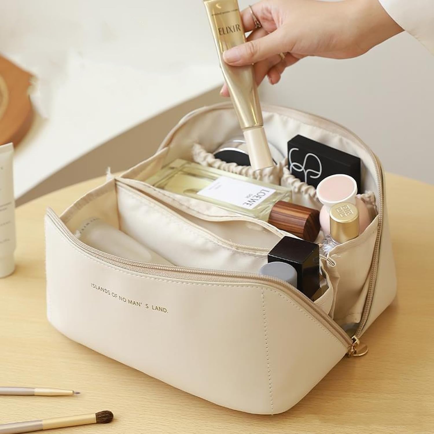Our Portable Cosmetic Pouch has a multi-compartment and double-layer design, the extra capacity can hold all your cosmetics, it is very suitable for travel. The large opening zipper design of the cosmetic pouch allows us to find items faster. It's a easy to handle and very practical cosmetic pouch.